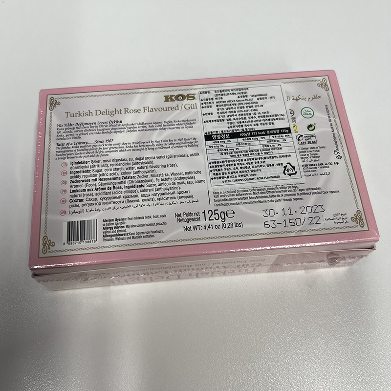 사실 예전에 친구랑 이태원 근처 놀러갔을 때 터키쉬딜라이트 전문점 갔던 때가 갑자기 생각나서 코스카 터키쉬딜라이트를 구매한 거였는데요. 예전에 먹으면서도 너무 달다~ 이러면서 먹었던 것 같은데 이것도 마찬가지인 것 같습니다. 로즈향이 굉장히 많이 나면서 매우 달달합니다. 저한테는 너무 달아서 하나 먹고 다시 뚜껑을 덮어줬습니다. 내일 또 하나만 먹게 될 것 같습니다. 맛은 있는데 답니다!
